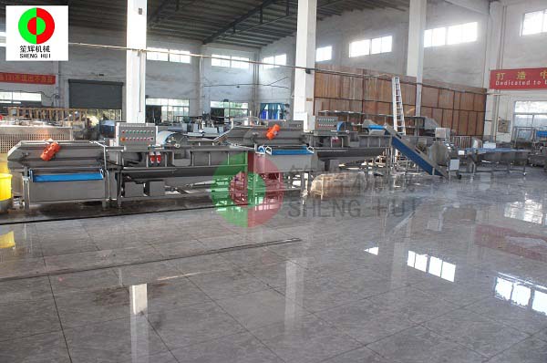 另一條生產(chǎn)線(xiàn)是(原料提升--脫破清洗--4人分選--切割--提升--純氧源高濃臭氧混合渦流洗菜機(jī)清洗--紅外線(xiàn)殺毒和預(yù)制冷保鮮二級(jí)渦流洗菜機(jī)清洗--脫水)