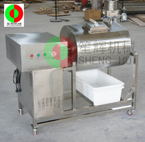 1、機(jī)器采用圓筒內(nèi)導(dǎo)板自擠壓原理進(jìn)行滾揉,當(dāng)筒體轉(zhuǎn)動(dòng)時(shí)肉塊導(dǎo)板向往里擠壓,肉塊經(jīng)自我摔打,相互擠壓,使肉的蛋白質(zhì)分解得易被人體吸收,同時(shí)能使添加料(淀粉等)與肉體蛋白質(zhì)互為融合,以達(dá)到肉質(zhì)變嫩、口感好,成品出率高的目的。