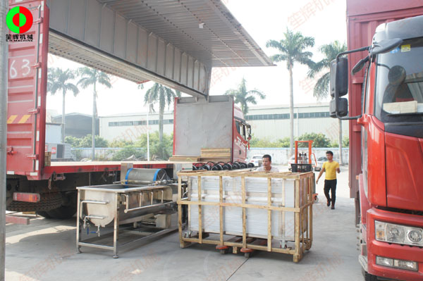 內(nèi)陸客戶王先生,月前訂購的一條蔬菜加工處理生產(chǎn)線正式完工交貨。生產(chǎn)線從6人分選輸送,到兩級渦流洗菜機(jī)組進(jìn)行清洗,然后提升輸送到風(fēng)干機(jī)組進(jìn)行風(fēng)干脫水處理。客戶同時(shí)定購一批毛刷清洗去皮機(jī),包裝機(jī)、氣泡洗菜機(jī),及相關(guān)定制平面工作臺等。