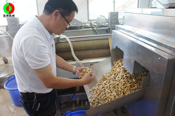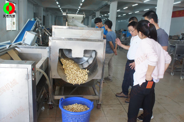 客戶到公司現(xiàn)場考察,并測試果蔬清洗機對花生的清洗效果!