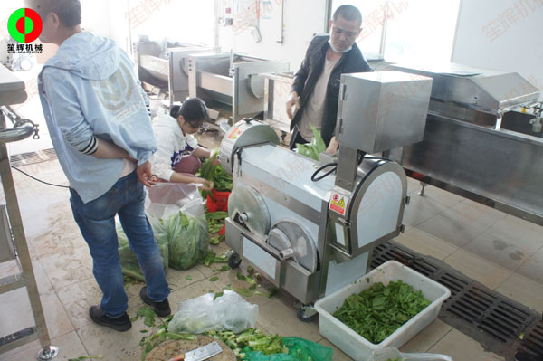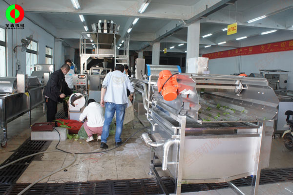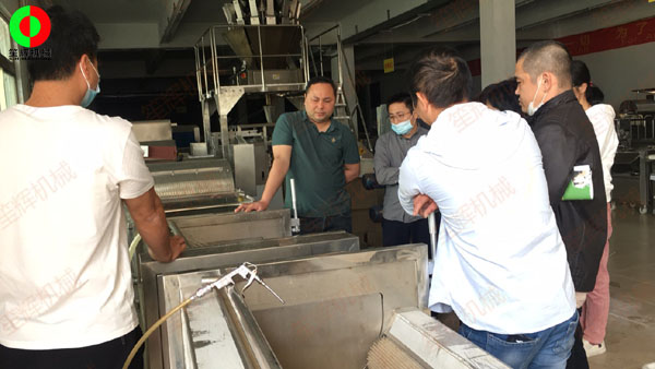 中山市客戶一行幾人親臨我司現(xiàn)場考察,并自帶大批蔬菜物料到我司測試相關蔬果前處理設備,包括了馬鈴薯去皮、紅薯去皮、生姜清洗去皮,以及白菜、油麥菜、包菜的切段渦流清洗等工藝流程??蛻魧y試結(jié)果非常滿意,雙方隨后簽訂了定購合同!