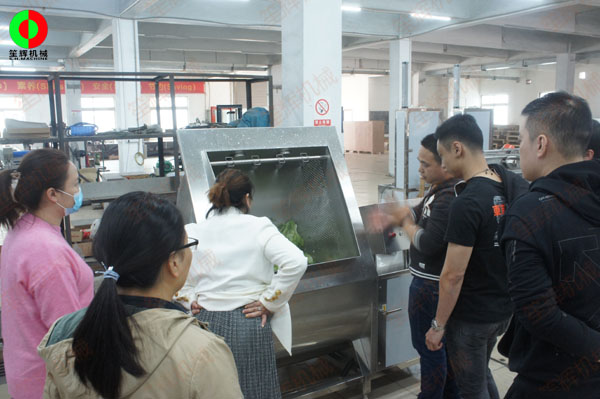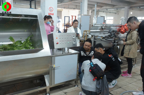 客戶考察我司軟硬件實(shí)力,現(xiàn)場測試多功能洗菜機(jī)及渦流洗菜機(jī)等設(shè)備!