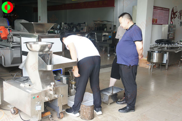 廣西客戶親臨我司考察并測試磨骨機等一批水產(chǎn)肉類加工機械!