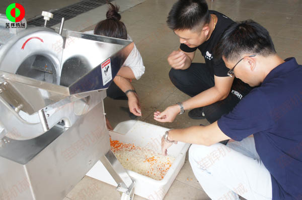 瓜果三維切丁機(jī)測試效果滿意,客戶付款購買隨車運(yùn)走!