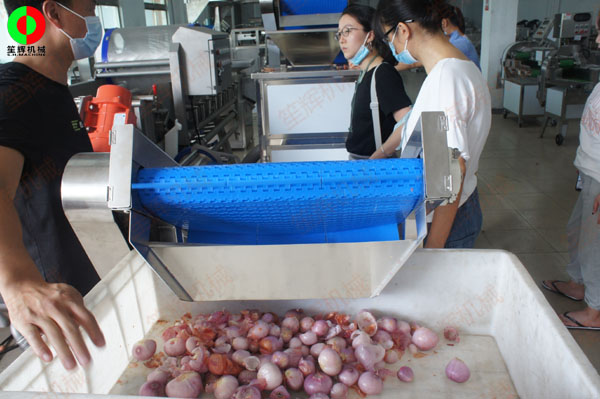 廣東惠州客戶王小姐親臨我司測試小洋蔥脫皮及打碎設(shè)備!我司洋蔥脫皮機運用壓縮空氣作為動力源,整個工作過程采用不用泡水,不用刀削,不磨損設(shè)計,通過氣流進行干式脫皮,確保洋蔥的完整度,適合蔬菜加工廠使用。