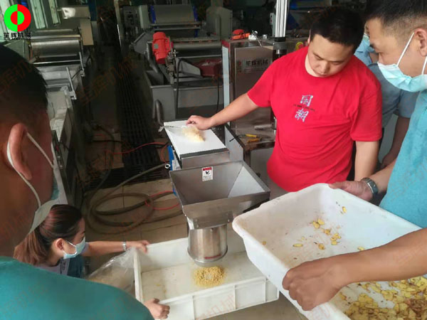 江門客戶謝先生親臨我司測(cè)試生姜清洗脫皮及打碎設(shè)備!我司生姜打碎機(jī)是通過(guò)多對(duì)刀組的快速切割進(jìn)行打碎,可以制作姜茸,洋蔥末,土豆泥,蒜泥(蒜蓉),菜蓉等等,多種果蔬打成碎蓉或者打成汁。采用不銹鋼制造,耐磨耐用,符合衛(wèi)*生*標(biāo)*準(zhǔn)。操作簡(jiǎn)單,清洗方便,安*全*可*靠。適合餐飲行業(yè)、酒店、飯?zhí)?、食品加工廠等單位使用。