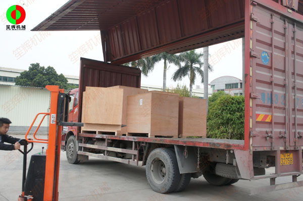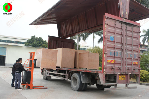 國外客戶訂購的一批毛刷清洗去皮機(jī)及瓜果削皮機(jī)裝車出貨!