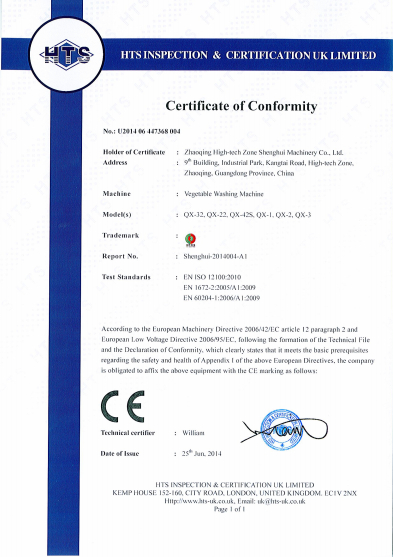 - 瓜果削皮機(jī)獲得CE認(rèn)證
