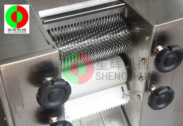 - 產(chǎn)品優(yōu)勢(shì): 用途:用于豬肉,牛肉,羊肉片增大,松開(kāi)肉筋,使肉片賣相好,口感好。機(jī)器原理:1.通過(guò)上層刀組,不銹鋼帶齒壓輪,帶齒設(shè)計(jì),能有效放大肉片尺寸及松肉效果。2.通過(guò)下層刀組,斷筋部分,能刺穿肉片,增強(qiáng)嫩化及松肉效果。