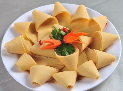 5.生產(chǎn)效率高,制作出來的豆皮效果好,厚薄均可生產(chǎn),成品率高,厚薄寬窄可調(diào),產(chǎn)品口感滑爽。