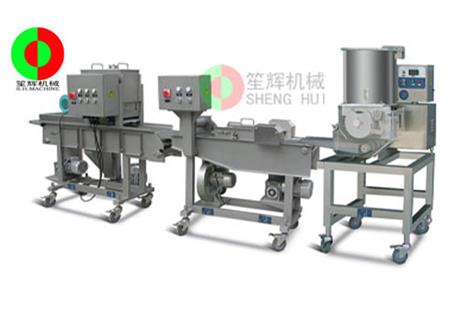 - 產(chǎn)品優(yōu)勢: 自動肉餅成型機(jī)生產(chǎn)線能自動完成肉餅成型,上漿,上粉,上面包屑等工序。通過更換不同的模具能實(shí)現(xiàn)生產(chǎn)不同形狀的產(chǎn)品。整機(jī)采用不銹鋼材質(zhì)制造,耐磨耐用,符合衛(wèi)*生標(biāo)準(zhǔn)。適合制作漢堡肉餅、雞塊餅,魚餅,土豆餅,南瓜餅等等食品。生產(chǎn)線自動化程度高,操作簡單,清洗方便,性能穩(wěn)定,可靠。
