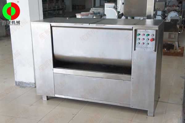 - 產(chǎn)品優(yōu)勢: 攪拌機(jī)是食品行業(yè)用途廣泛的設(shè)備,它主要用于物料的混和,對于粒狀物、粉狀物、糊狀物、槳狀物均有很好的通用性。我司的全自動攪拌機(jī)它具有自動出料功能,更加方便了人們的使用,減輕了工人的勞動強(qiáng)度。雙絞龍與扇形拌齒的結(jié)構(gòu),使物料的混和更加快速和均勻。整體的固定拌齒的設(shè)計(jì),更加符合衛(wèi)*生的要求,更加方便了設(shè)備的清洗。 它適應(yīng)大、中、小型食品加工廠,用于加工制作風(fēng)干腸類產(chǎn)品、粒狀、泥狀、混合餡料產(chǎn)品、丸類產(chǎn)品等,同時也是生產(chǎn)水餃、餛飩類面食產(chǎn)品的可選設(shè)備。